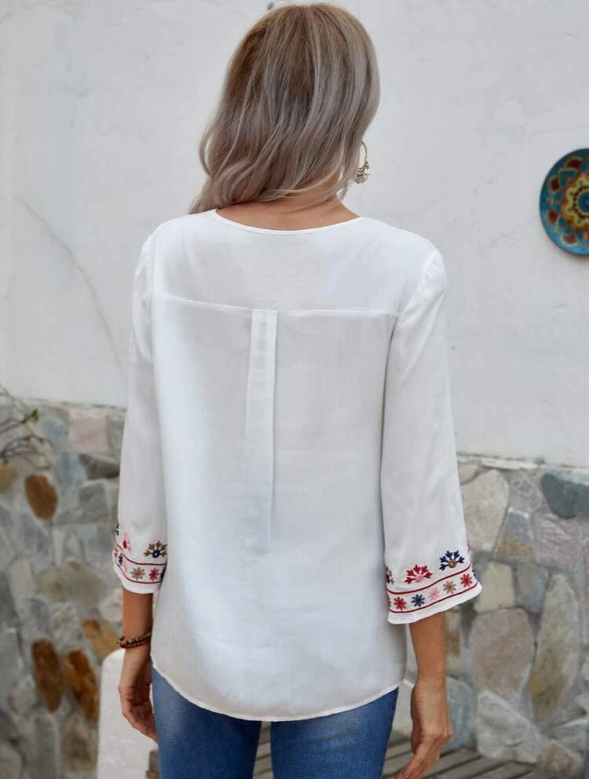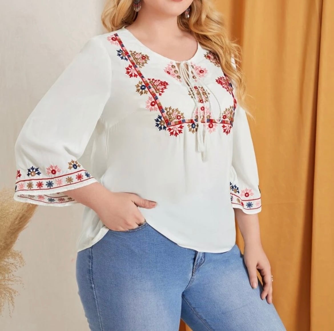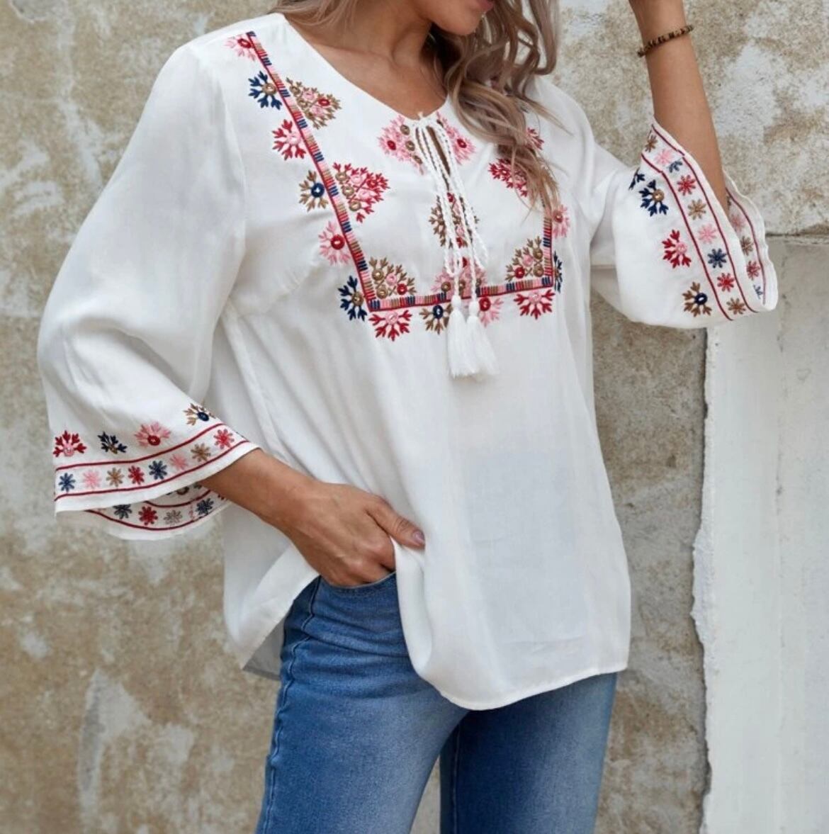 【プラスサイズ有】刺繍トップス プルオーバー TOPS ボヘミアンブラウス 7部袖