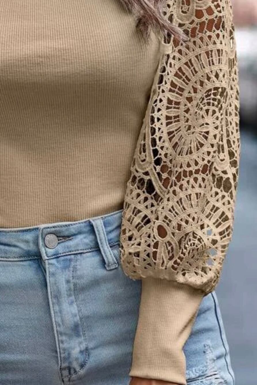 Beige Lantern Sleeves Tops 袖レース 袖コンシャス ランタンスリーブ カットソー トップス boho 北欧